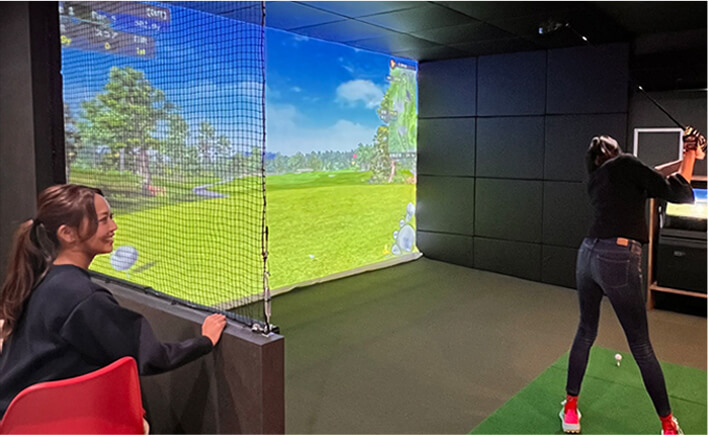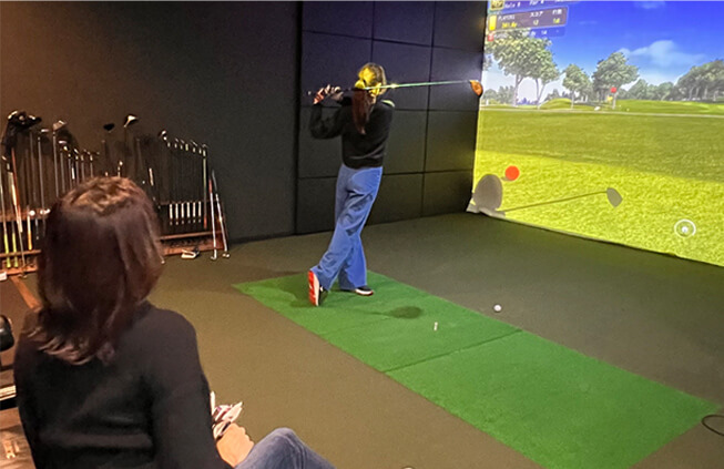 一人で練習するには、スイング作りに集中でき、とても良い環境だと思います。シミュレーションの再現性もすごく、スピンを入れるとちゃんとスピンがかかるのには驚きました。仕事の時間が不定期なので24時間いつでも行けて、オンラインで予約が即決するところが気に入っています。