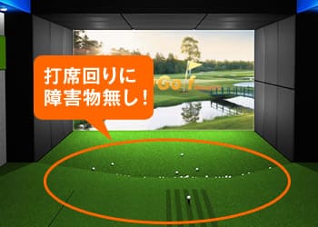前世代のシミュレーターは打席部にセンサーがあり、ボールの置く場所も決まっていましたが、「Joy Golf smart+」は、打席部のセンサーを天井に設置することで打席回りに障害物の無いスッキリした設計になっており、