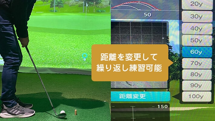 ドライバー、ニアピン、アプローチの各練習モードがございます。